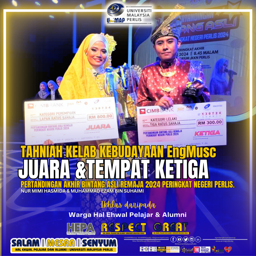 PKBU - Two students from the EngMusc Cultural Club achieved outstanding success in the 2024 Youth Asli Star Finals at the Perlis State Level.